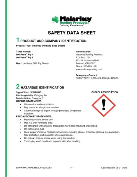 500 Pano Ply 4 & 506 Pano Ply 6 (Discontinued) Safety Data Sheet